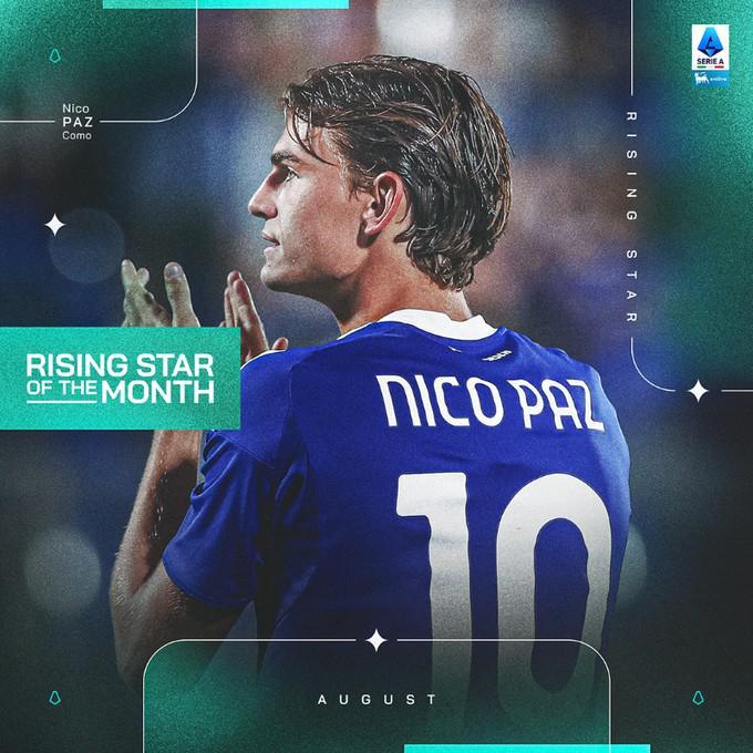 北京时间9月10日,意甲官方发布公告,宣布科莫中场尼科-帕斯当选8月最佳U23球员。